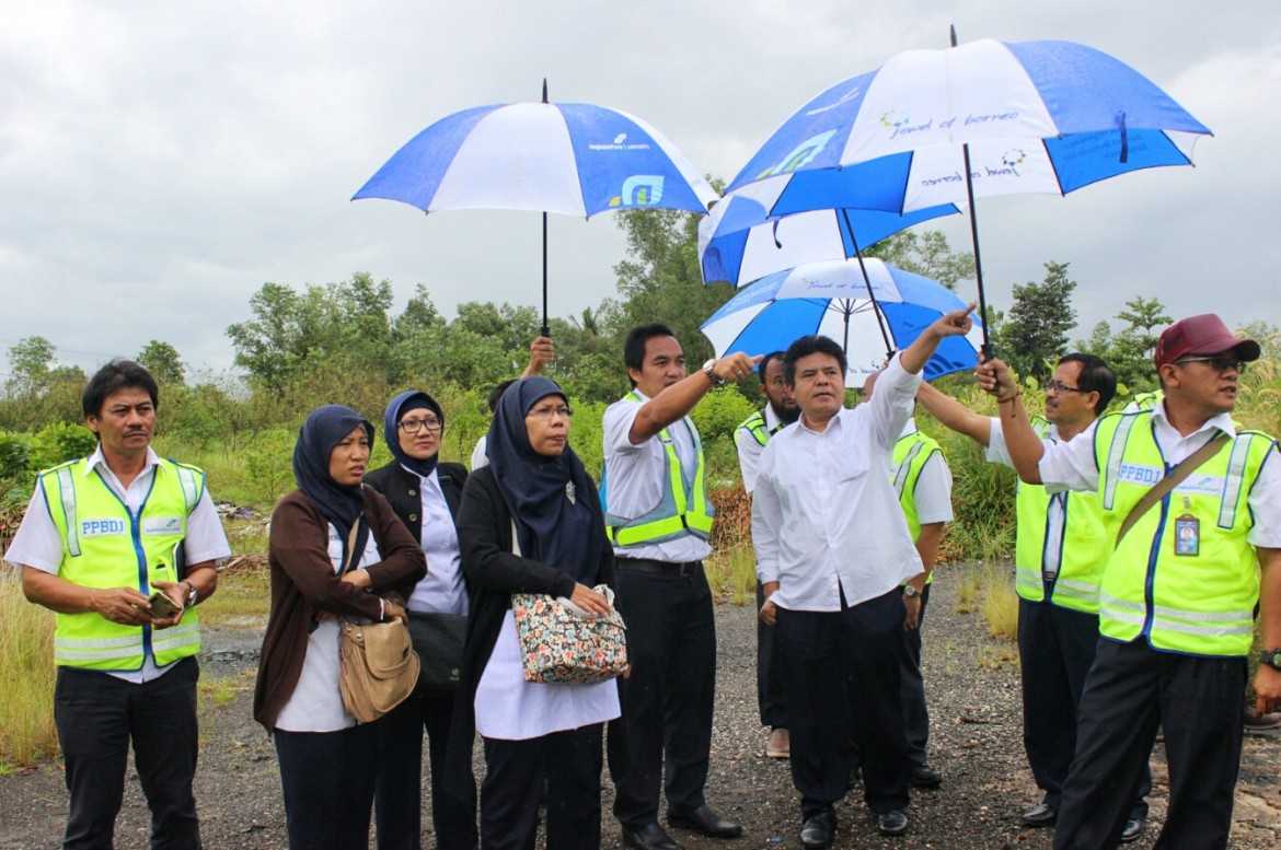 Komisaris bersama rombongan kemudian menuju ke lahan pengembangan bandara baru untuk melihat langung lokasi bandara baru dengan rute Kelurahan Guntung Payung hingga Kelurahan Syamsudin Noor, Kecamatan Landasan Ulin.(Humas BDJ)