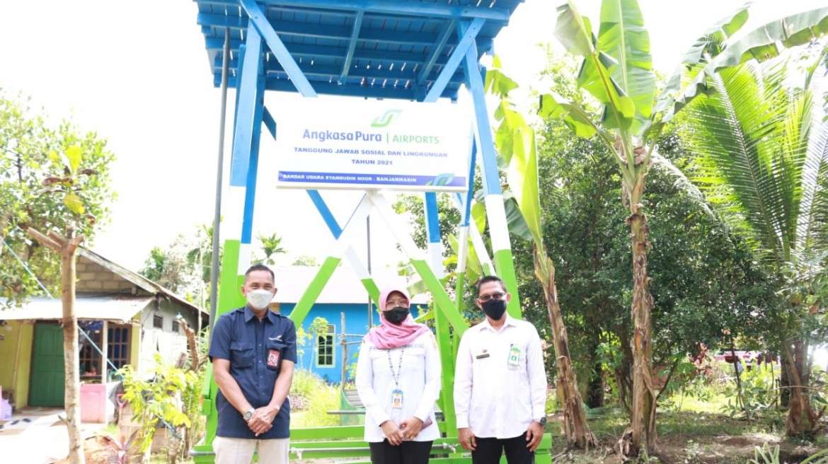 Sebanyak satu buah sumur, satu buah menara air, dan 12 titik distribusi air diserahkan secara langsung oleh General Manager Bandara Internasional Syamsudin Noor kepada Lurah Guntung Payung di kawasan Jln. Guntung Damar.